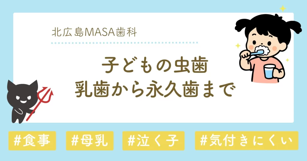 A はい、MASA歯科にはキッズルームを完備しています。おもちゃや絵本をご用意しているほか、テレビでアニメも視聴いただけますので、お子様が退屈せずにお待ちいただけます。北広島市の歯医者をお探しのご家族連れの方にも快適にご利用いただけるよう、待ち時間も楽しく過ごせる環境づくりを心がけています。
